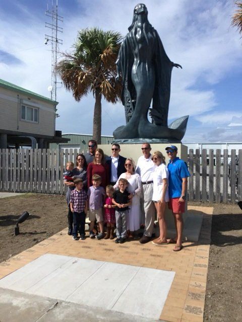 The Lady is surrounded by bricks memorializing those who spent lives enjoying the Gulf.